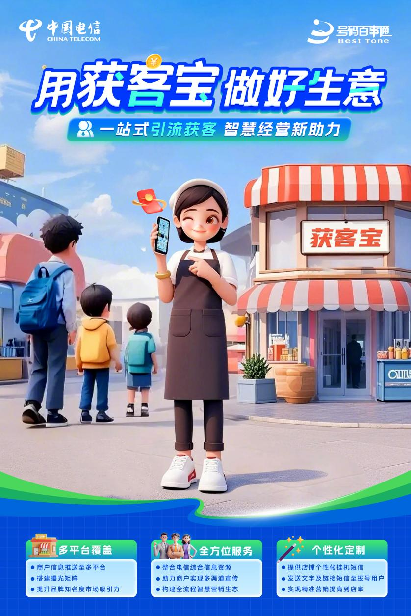 如果说曝光是引流的前提,服务则是转化的保障。“获客宝”通过整合中国电信综合信息资源与互联网力量,提供店铺维系、图片更新、视频/海报、商品推广、活动推广、挂机名片等一站式服务,构建从拉新、转化到留存的全流程智慧营销生态。